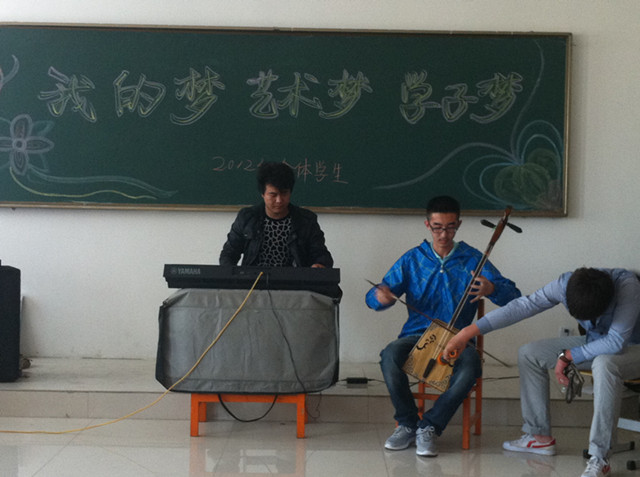 艺术系学生科、团总支于5月6日组织开展了2012级全体学生“我的梦·艺术梦·学子梦”主题公开团课活动,系副主任郭才参加了活动。活动以四名阳光帅气男生的一曲励志歌《站起来》拉开了序幕,之后,同学们分别以歌唱、朗诵、舞蹈与合唱的形式抒发自己的理想,舞动自己的梦想。最后,全体同学起立合唱《共青团员之歌》,再一次将活动场面升华。团课结束后,有部分学生积极找班主任和团总支老师畅谈了自己的目标和灿烂梦想,并表示会执着的在艺术道路上完成“我的梦·艺术梦·学子梦”。