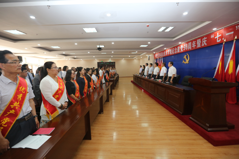 为了庆祝中国共产党96华诞,回顾总结学院党建工作所取得的显著成绩,交流经验,表彰先进,6月29日上午,学院在九楼报告厅隆重召开了庆祝建党96周年暨庆“七一”表彰大会,对一年来在深入推进“两学一做”学习教育过程中取得优异成绩的优秀共产党员、优秀党务工作者和先进基层党组织进行表彰。学院党委班子出席大会并在主席台就座,科级以上党员干部参会。党委副书记、院长张廷主持大会。