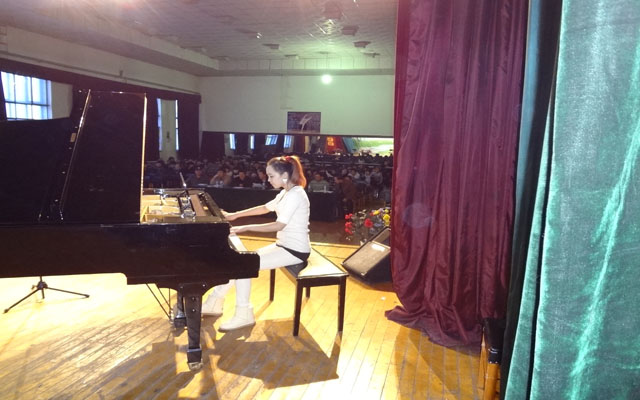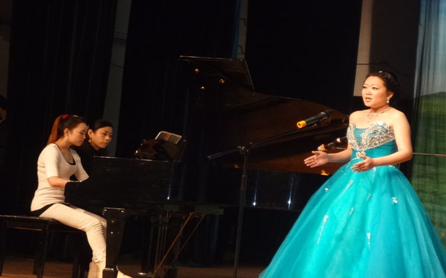 下午3点和晚上7点在艺术系三楼演出厅进行器乐、声乐、舞蹈教师的专业汇报演出。两台汇报演出中,声、器乐教师向师生演绎了中外不同风格的声乐和器乐作品。曲目品种全面,演唱(奏)技艺精湛,舞台表现力丰富。以个人才艺展示和集体合作的形式,充分展示了我系音乐教师的专业水平和艺术风采。舞蹈教师是以组舞的形式向我们展示了他们集体创作的舞蹈“我们的青春”。舞蹈中包含现代和民族两种舞蹈形式,他们以其深厚的舞蹈功底,向我们诠释了作品的深刻内涵。艺术系年轻舞蹈教师,经过了一年的培养和磨练,专业水平都有了很大的提高。